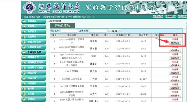 一、开放实验课程选课