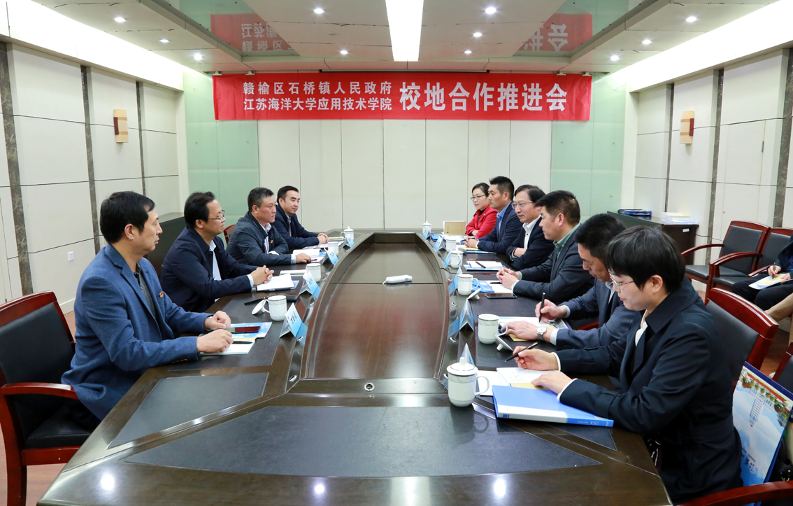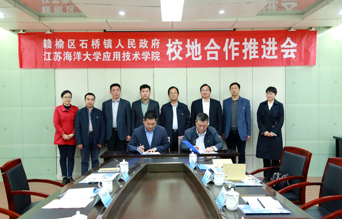 近日,公司与赣榆区石桥镇人民政府校地合作签约仪式在宋跳校区行政楼三楼会议室举行。赣榆区人大常委会副主任王学济,石桥镇党委书记张来涛,党委副书记、镇长李振,镇人大主席、党委副书记姜冰厚,党委委员张艳、刘洪明,公司党委书记周清华,经理丁兆奎,党委副书记万金店,副经理隋福利,各科室负责人出席了签约仪式。会议由丁兆奎主持。